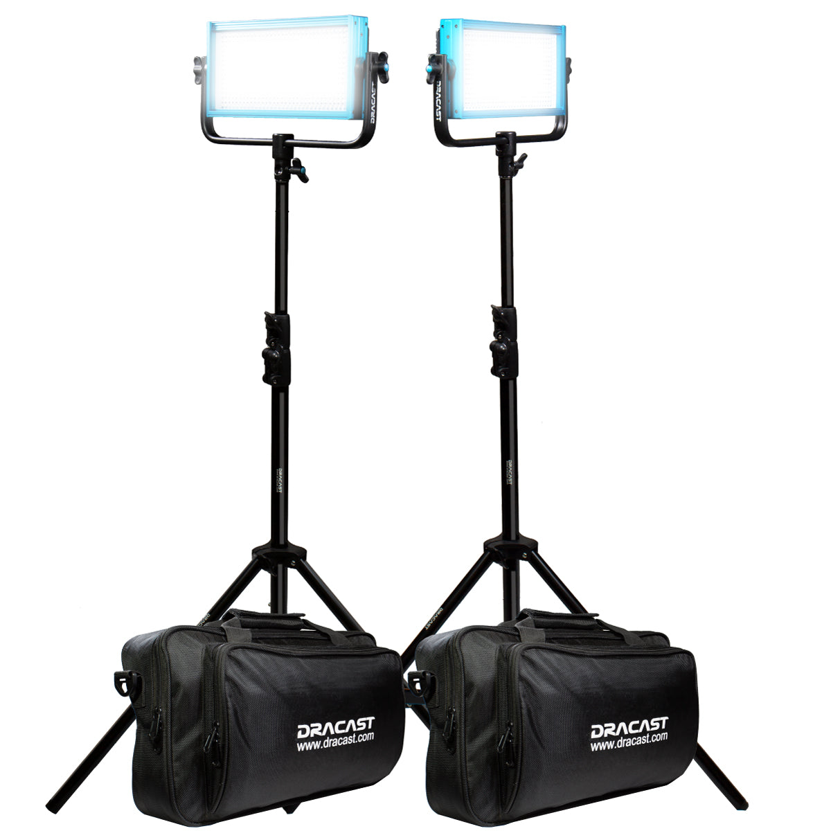 This kit includes two (2) Pro Series 500 LED panels in 5600K daylight color temperature. Also included with each panel is A/C power adapter, nylon padded travel case, and a Dracast DRDLS805 light stand.